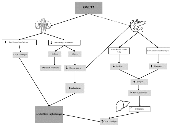 Figure 1 Physiopathologie de l’acidocétose euglycémique causée par les iSGLT2a