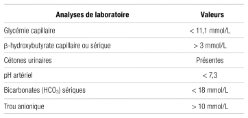 Tableau I Critères diagnostiques de l’acidocétose euglycémique