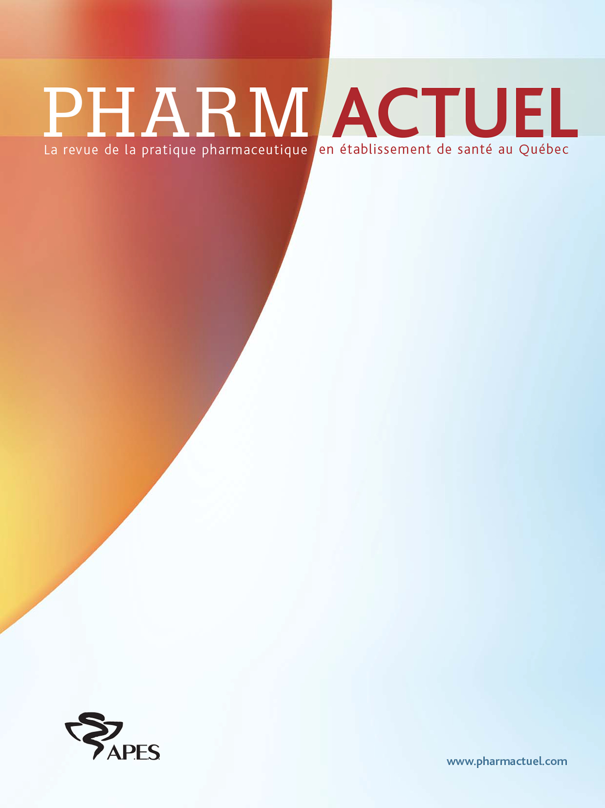 Les droits d’auteur de tout ce que contient Pharmactuel sont protégés par l’Association des pharmaciens des établissements de santé du Québec (A.P.E.S.). En soumettant leur manuscrit, les auteurs transfèrent, cèdent et, en d’autres termes, aliènent tous les droits qu’ils détiennent en vertu des droits d’auteur. Dès la publication du document, les auteurs doivent obtenir la permission de l’A.P.E.S. pour la reproduction de tout texte, figure, tableau ou illustration tirés de cet ouvrage dans un autre ouvrage de leur cru. Dans l’éventualité de la non-publication d’un manuscrit dans Pharmactuel, tous les dits droits seront abandonnés. L‘utilisation en tout ou en partie d’un article publié dans Pharmactuel doit être approuvée par l’A.P.E.S. Un formulaire d’autorisation concernant les droits d’auteur peut être obtenu en communiquant avec le coordonnateur de Pharmactuel à coordonnateur@pharmactuel.com.
